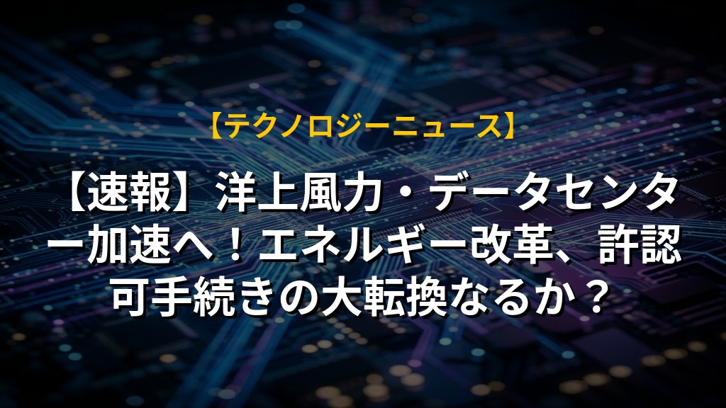 【速報】洋上風力・データセンター加速へ!エネルギー改革、許認可手続きの大転換なるか?