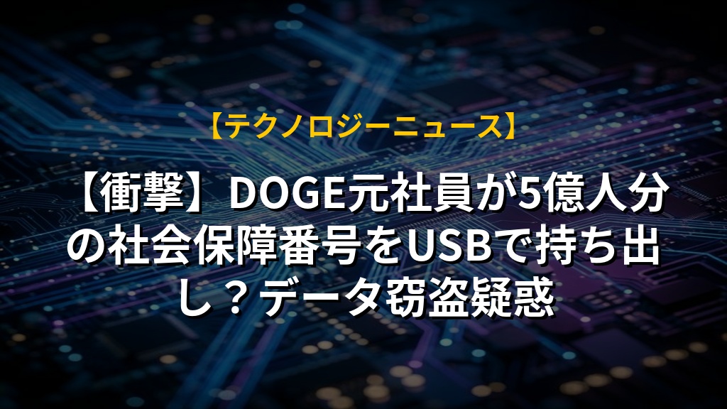 【衝撃】DOGE元社員が5億人分の社会保障番号をUSBで持ち出し?データ窃盗疑惑