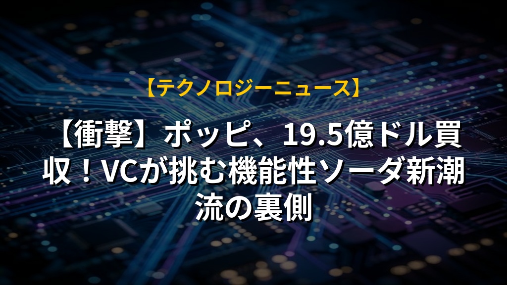 【衝撃】ポッピ、19.5億ドル買収!VCが挑む機能性ソーダ新潮流の裏側
