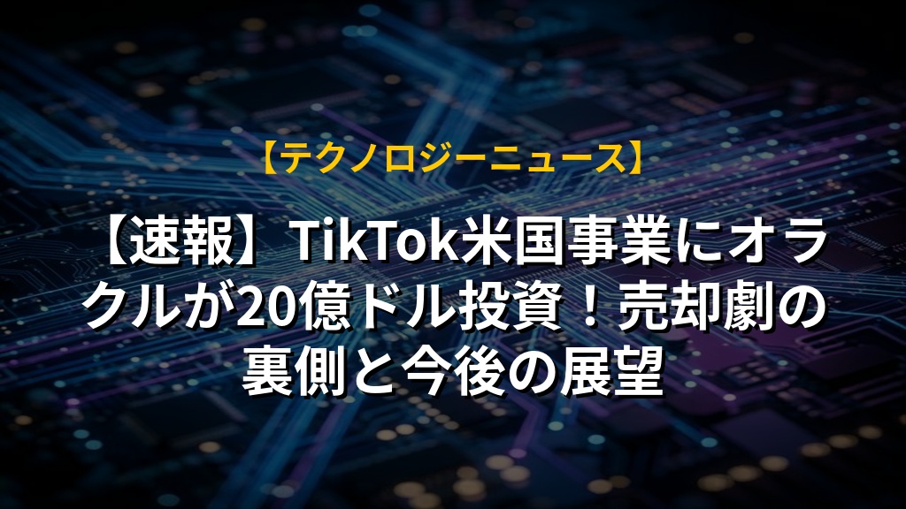 【速報】TikTok米国事業にオラクルが20億ドル投資!売却劇の裏側と今後の展望