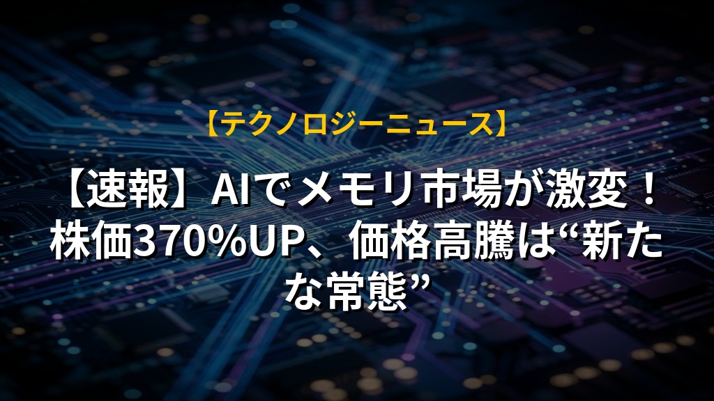 【速報】AIでメモリ市場が激変!株価370%UP、価格高騰は“新たな常態”