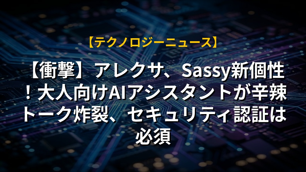 【衝撃】アレクサ、Sassy新個性!大人向けAIアシスタントが辛辣トーク炸裂、セキュリティ認証は必須