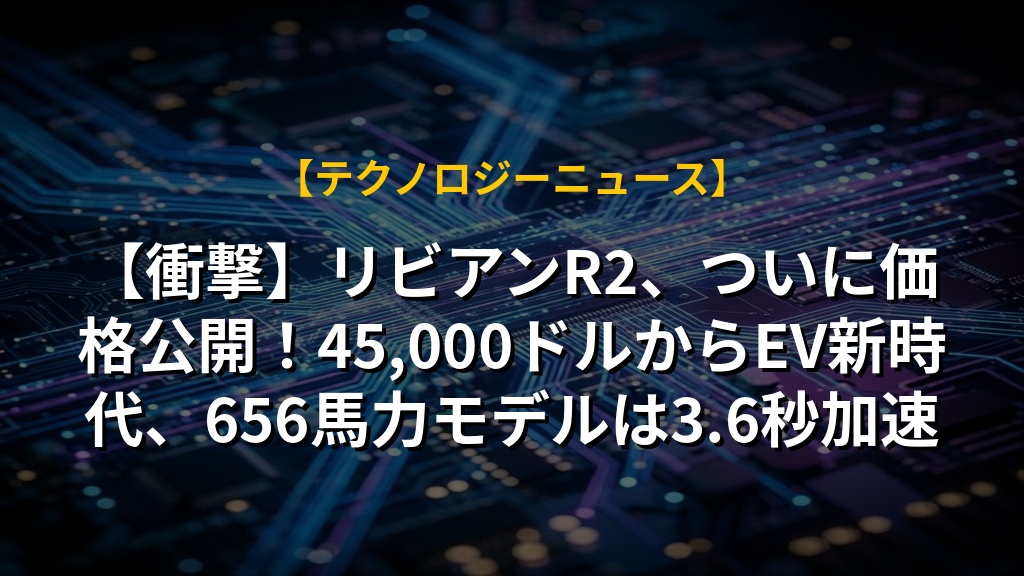 【衝撃】リビアンR2、ついに価格公開!45,000ドルからEV新時代、656馬力モデルは3.6秒加速