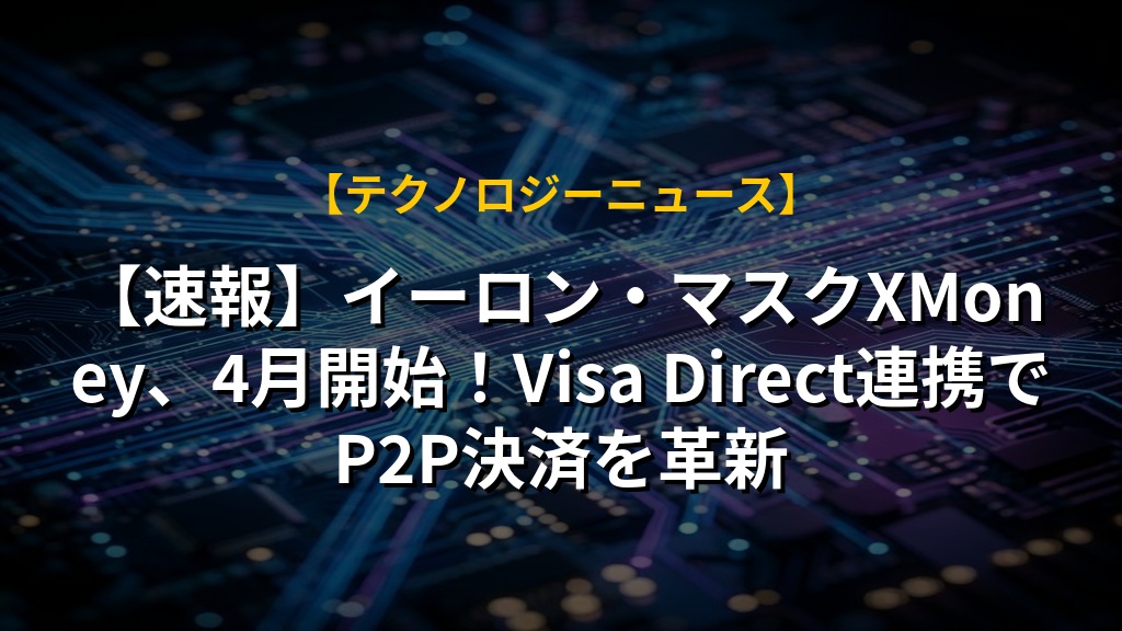 【速報】イーロン・マスクXMoney、4月開始!Visa Direct連携でP2P決済を革新