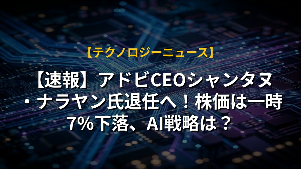 【速報】アドビCEOシャンタヌ・ナラヤン氏退任へ!株価は一時7%下落、AI戦略は?