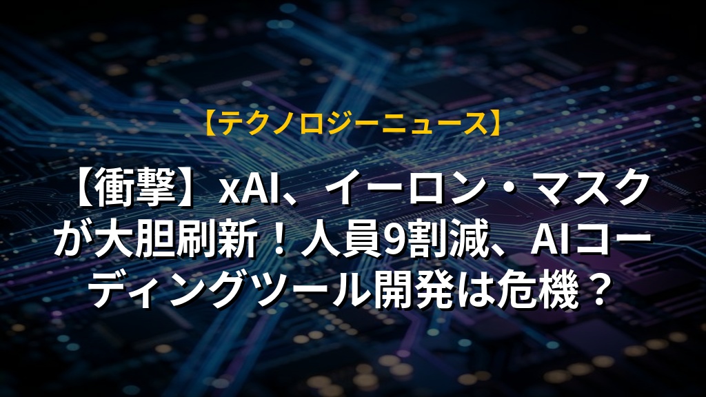 【衝撃】xAI、イーロン・マスクが大胆刷新!人員9割減、AIコーディングツール開発は危機?