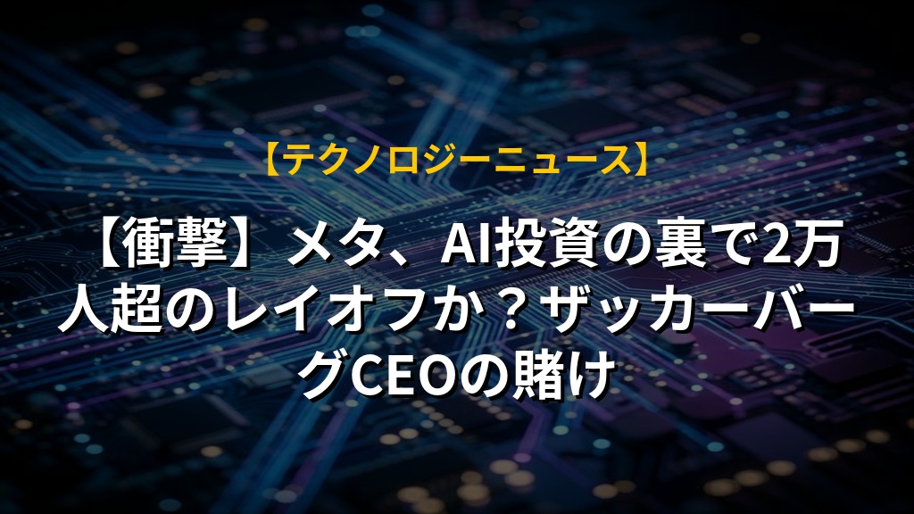 【衝撃】メタ、AI投資の裏で2万人超のレイオフか?ザッカーバーグCEOの賭け