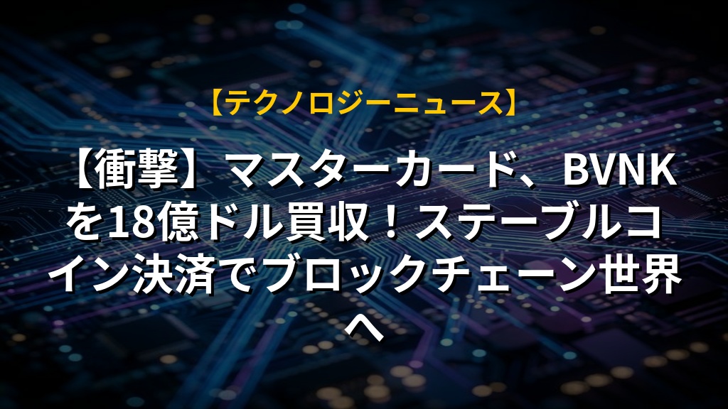 【衝撃】マスターカード、BVNKを18億ドル買収!ステーブルコイン決済でブロックチェーン世界へ