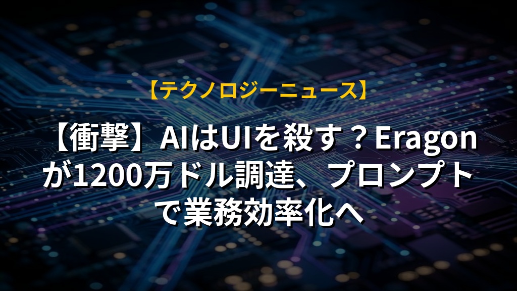【衝撃】AIはUIを殺す?Eragonが1200万ドル調達、プロンプトで業務効率化へ