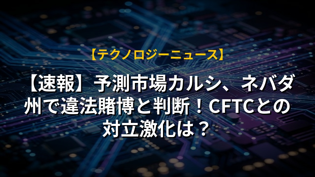 【速報】予測市場カルシ、ネバダ州で違法賭博と判断!CFTCとの対立激化は?