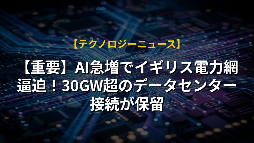 【重要】AI急増でイギリス電力網逼迫!30GW超のデータセンター接続が保留