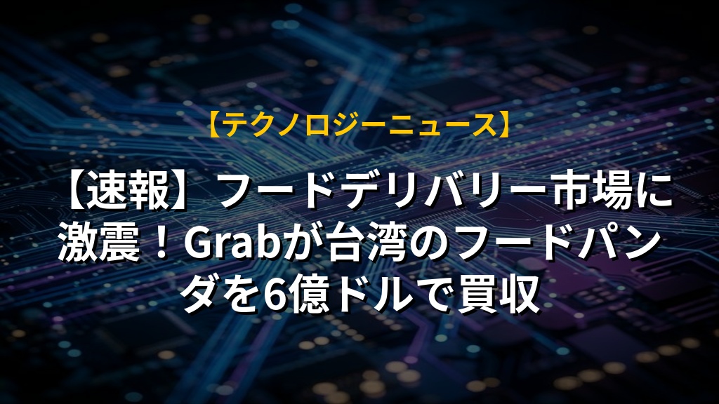 グラブがフードパンダの台湾事業を6億ドルで買収し、東南アジア以外への初の進出を果たします。以前ウーバーの買収が規制で頓挫した台湾市場ですが、グラブは50%以上のシェアでウーバーイーツと競合する形となり、競争が激化しそうです。