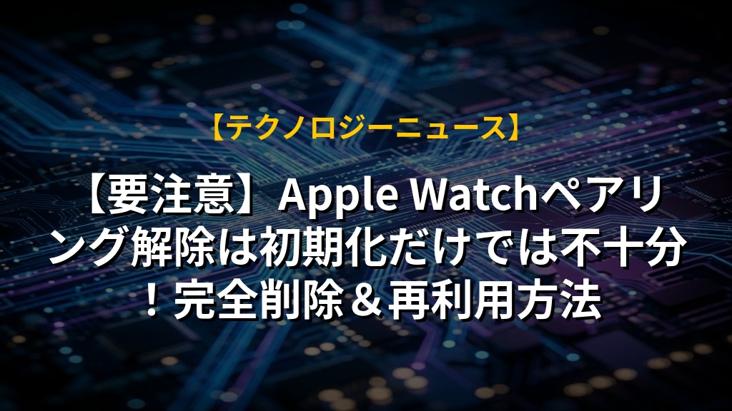 【要注意】Apple Watchペアリング解除は初期化だけでは不十分!完全削除&再利用方法