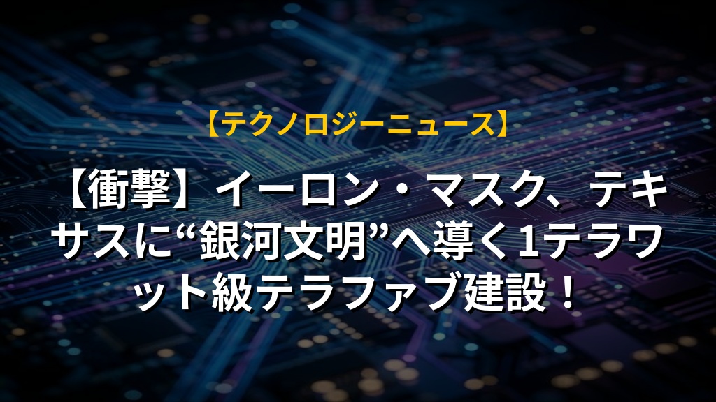 【衝撃】イーロン・マスク、テキサスに“銀河文明”へ導く1テラワット級テラファブ建設!