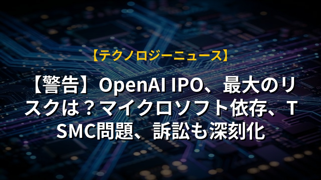 【警告】OpenAI IPO、最大のリスクは?マイクロソフト依存、TSMC問題、訴訟も深刻化