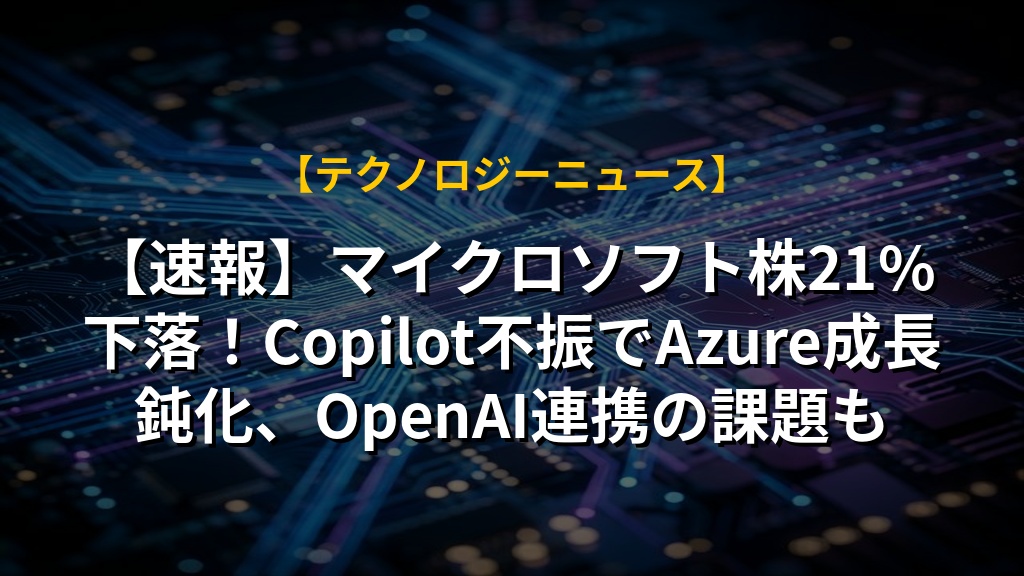 【速報】マイクロソフト株21%下落!Copilot不振でAzure成長鈍化、OpenAI連携の課題も