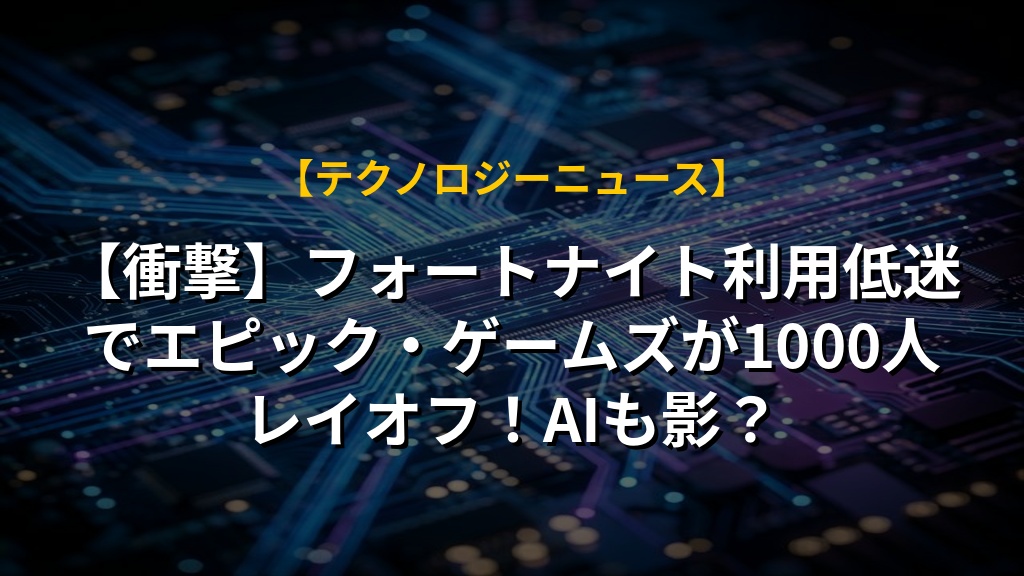 エピック・ゲームズが、収益の低下を受けて1000人規模のレイオフを実施したとのことです。人気の「フォートナイト」の利用者が減り、運営コストが上がっていることが大きな要因のようです。AIが直接の原因ではないものの、チップ不足などが消費者の支出に影響を与えている可能性も指摘されています。