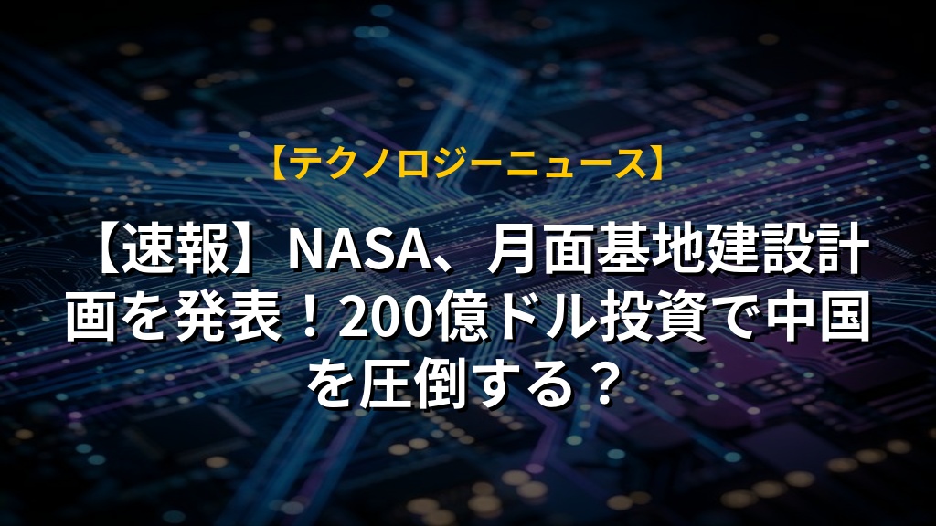 【速報】NASA、月面基地建設計画を発表!200億ドル投資で中国を圧倒する?
