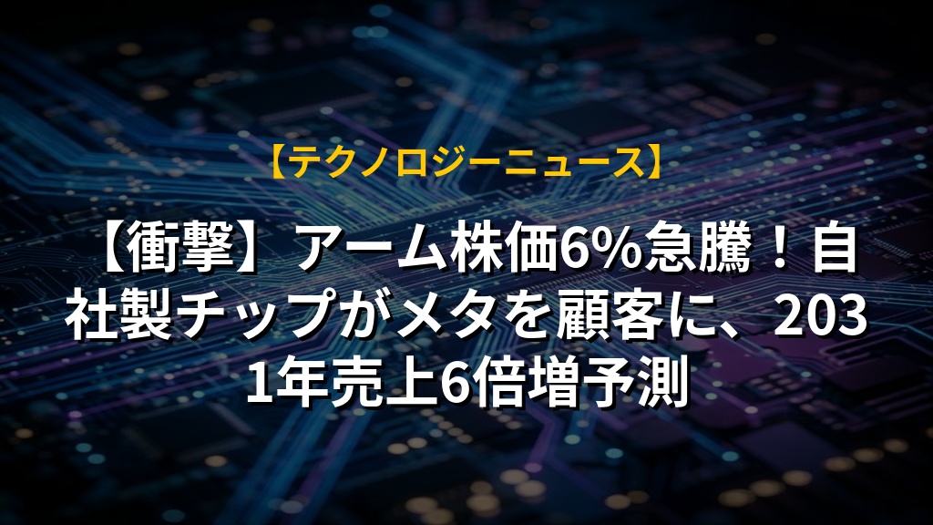 【衝撃】アーム株価6%急騰!自社製チップがメタを顧客に、2031年売上6倍増予測