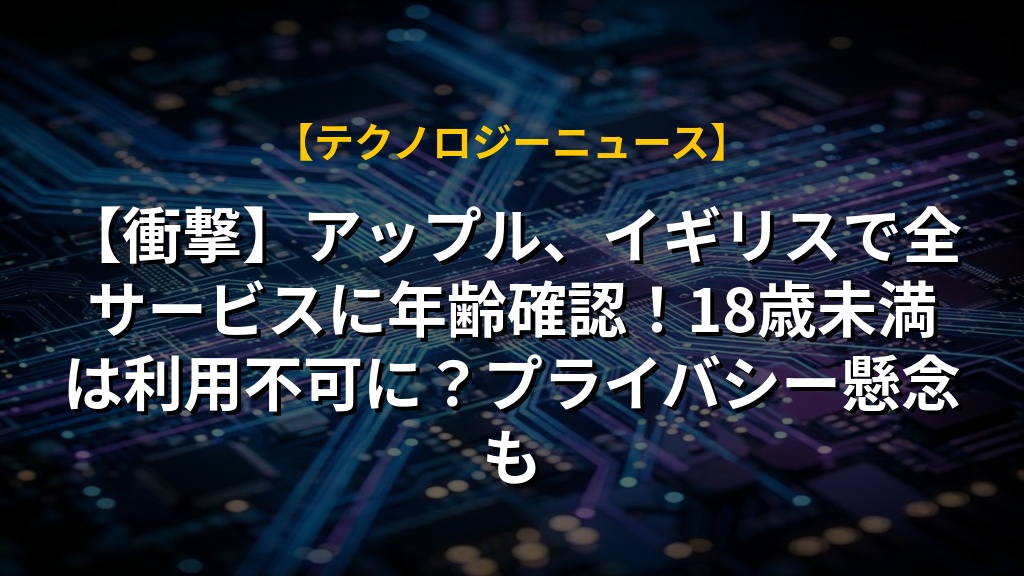 【衝撃】アップル、イギリスで全サービスに年齢確認!18歳未満は利用不可に?プライバシー懸念も
