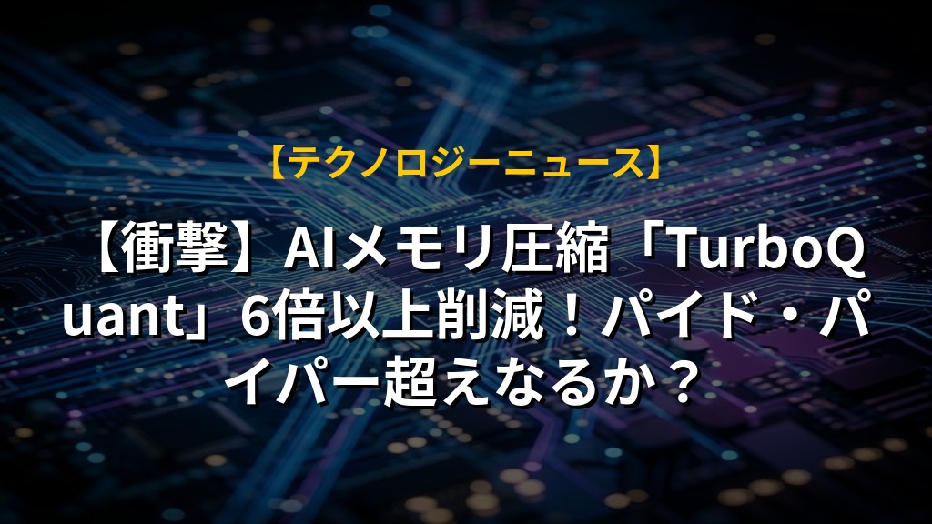 【衝撃】AIメモリ圧縮「TurboQuant」6倍以上削減!パイド・パイパー超えなるか?