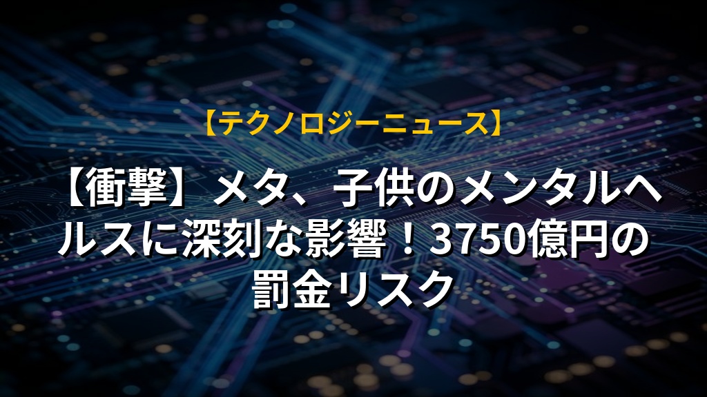 【衝撃】メタ、子供のメンタルヘルスに深刻な影響!3750億円の罰金リスク
