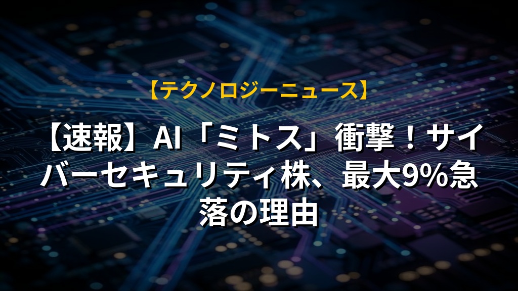 【速報】AI「ミトス」衝撃!サイバーセキュリティ株、最大9%急落の理由