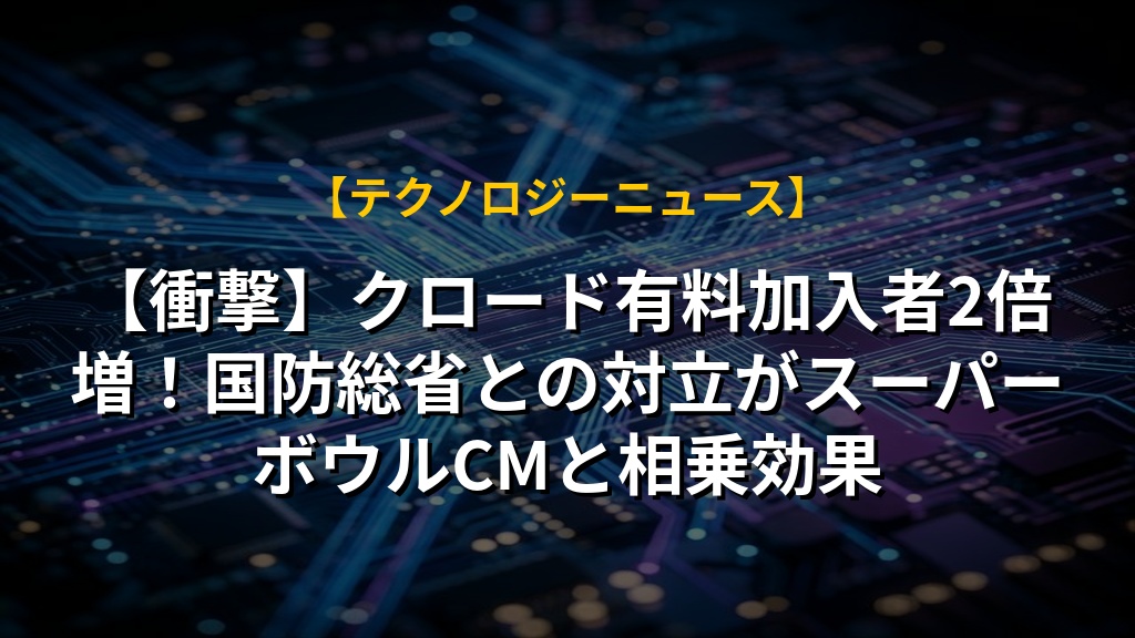【衝撃】クロード有料加入者2倍増!国防総省との対立がスーパーボウルCMと相乗効果