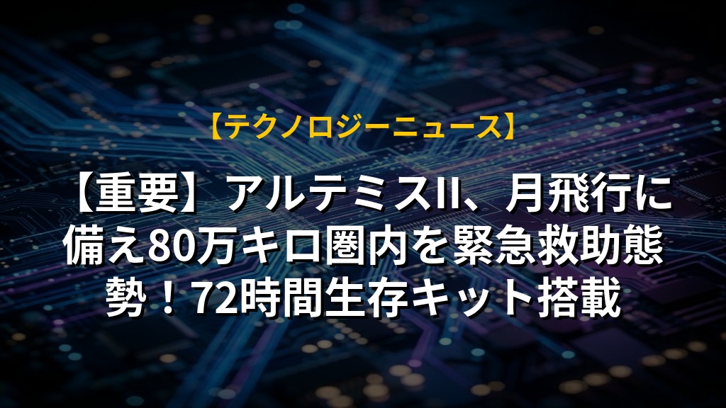 【重要】アルテミスII、月飛行に備え80万キロ圏内を緊急救助態勢!72時間生存キット搭載