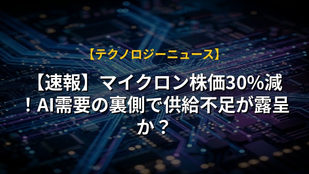 【速報】マイクロン株価30%減!AI需要の裏側で供給不足が露呈か?