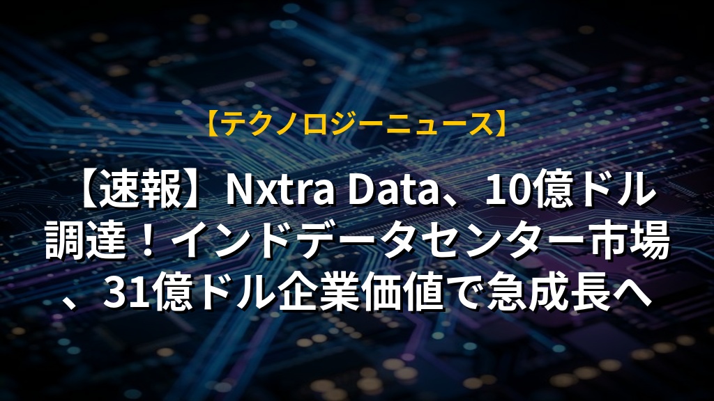 インドの通信大手バーティ・エアテル傘下のデータセンター部門Nxtra Dataが、10億ドルの資金調達に成功しました。これにより企業価値は約31億ドルに達し、インド国内での事業拡大が加速します。