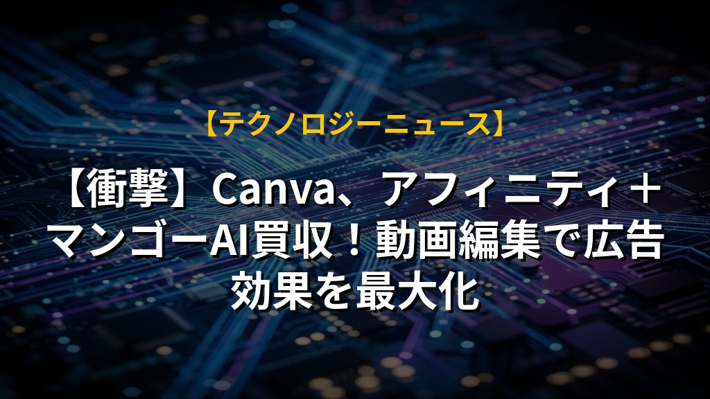 【衝撃】Canva、アフィニティ+マンゴーAI買収!動画編集で広告効果を最大化