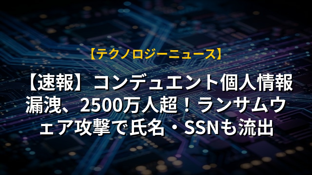 【速報】コンデュエント個人情報漏洩、2500万人超!ランサムウェア攻撃で氏名・SSNも流出