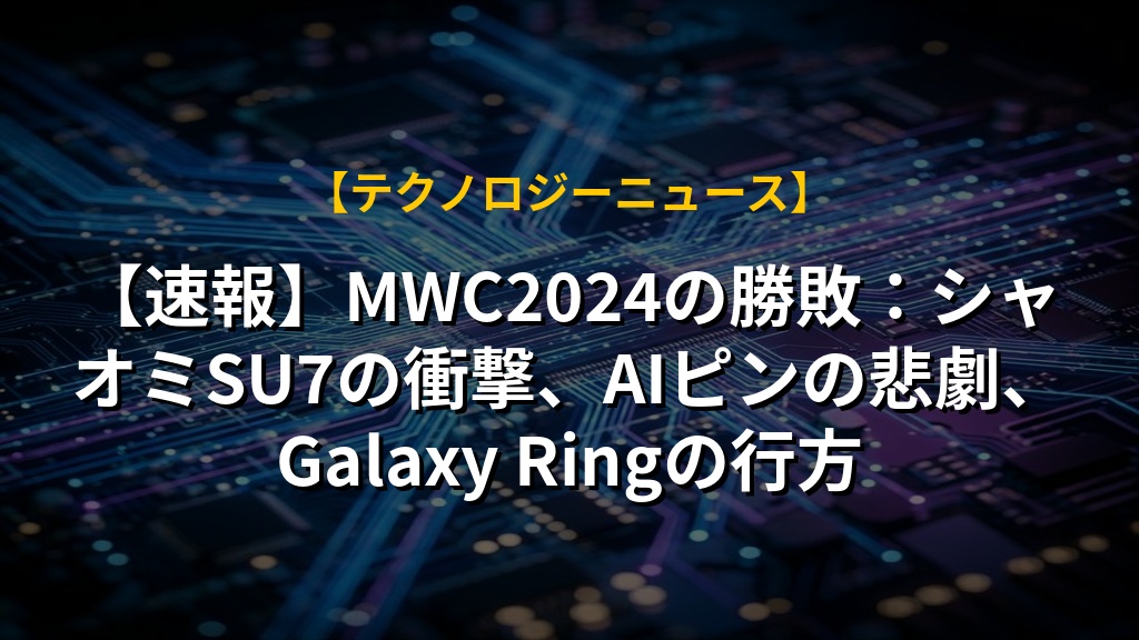 【速報】MWC2024の勝敗:シャオミSU7の衝撃、AIピンの悲劇、Galaxy Ringの行方