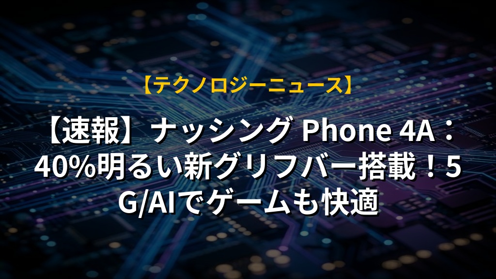 【速報】ナッシング Phone 4A:40%明るい新グリフバー搭載!5G/AIでゲームも快適
