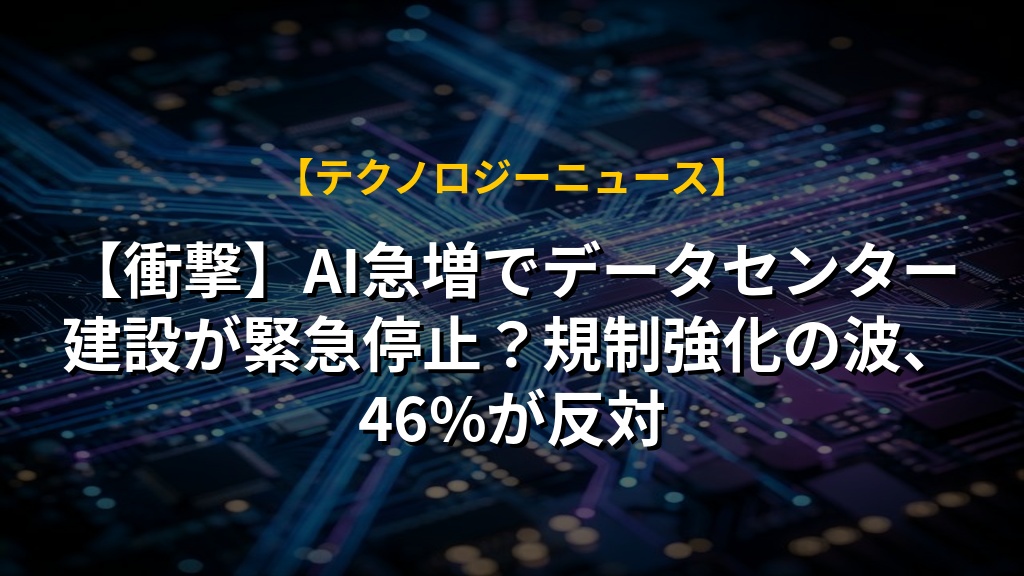 【衝撃】AI急増でデータセンター建設が緊急停止?規制強化の波、46%が反対