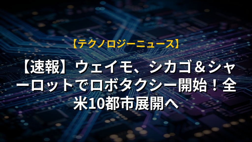 【速報】ウェイモ、シカゴ&シャーロットでロボタクシー開始!全米10都市展開へ