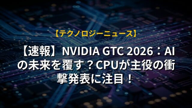 【速報】NVIDIA GTC 2026:AIの未来を覆す?CPUが主役の衝撃発表に注目!