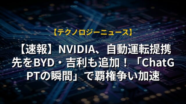 【速報】NVIDIA、自動運転提携先をBYD・吉利も追加!「ChatGPTの瞬間」で覇権争い加速