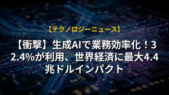 【衝撃】生成AIで業務効率化!32.4%が利用、世界経済に最大4.4兆ドルインパクト
