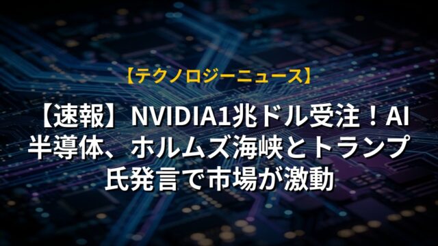【速報】NVIDIA1兆ドル受注!AI半導体、ホルムズ海峡とトランプ氏発言で市場が激動