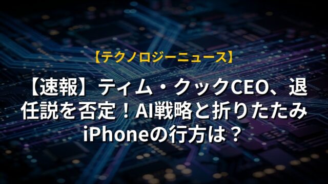 【速報】ティム・クックCEO、退任説を否定!AI戦略と折りたたみiPhoneの行方は?