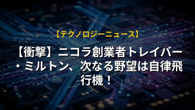 【衝撃】ニコラ創業者トレイバー・ミルトン、次なる野望は自律飛行機!