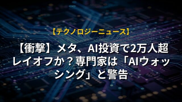 【衝撃】メタ、AI投資で2万人超レイオフか?専門家は「AIウォッシング」と警告