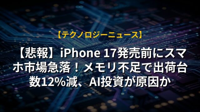 【悲報】iPhone 17発売前にスマホ市場急落!メモリ不足で出荷台数12%減、AI投資が原因か