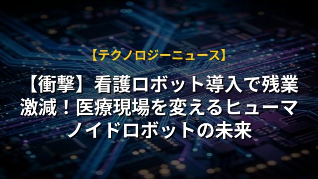 【衝撃】看護ロボット導入で残業激減!医療現場を変えるヒューマノイドロボットの未来