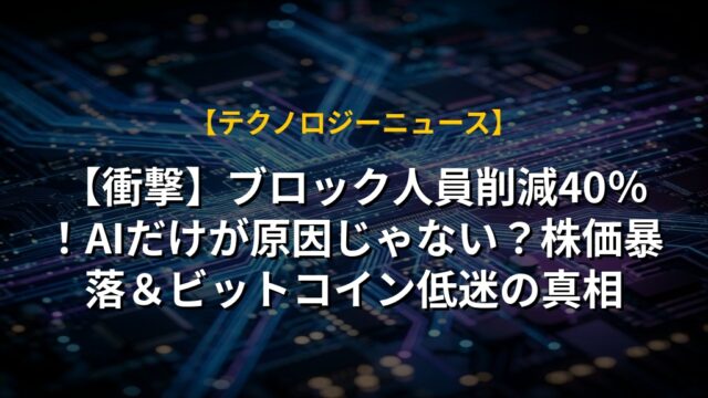 【衝撃】ブロック人員削減40%!AIだけが原因じゃない?株価暴落&ビットコイン低迷の真相