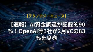 【速報】AI資金調達が記録的90%!OpenAI等3社が2月VCの83%を席巻