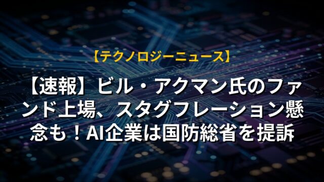 【速報】ビル・アクマン氏のファンド上場、スタグフレーション懸念も!AI企業は国防総省を提訴