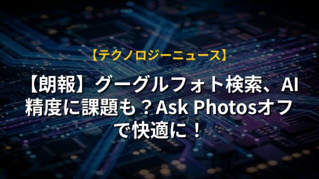 【朗報】グーグルフォト検索、AI精度に課題も?Ask Photosオフで快適に!